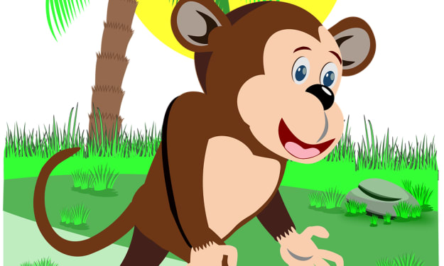One day the little monkey Doudou and the little monkey Mimi went up the mountain to pick peaches, and they each picked a lot.