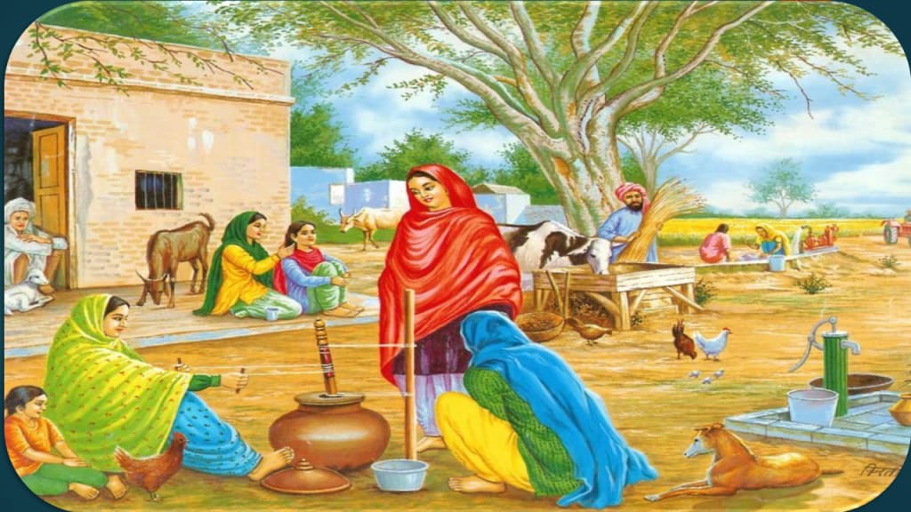 Sohni started rinsing her dripping clothes. Oh, what a beautiful girl. Her beauty was dazzling in the moonlight. The Sister-in-law kept staring at her with her eyes fixed. Sohni hid the pitcher in a bush and walked towards the house and lay down on her bed in the dark. Those were summer days. The clothes had dried on her way.