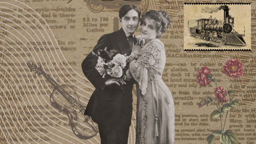I turned around not knowing what to expect. I turned and saw a woman seated at the back of the train, she looked just as confused as I felt. She was in a red dress with a full skirt and sleeves that puffed around her shoulders. She wore white gloves and looked the perfect picture of grace. I was completely taken over by her beauty and sat in silence just watching her. Once I had finally gained my composer I stood up and walked to the back of the train. I extended my arm for her to take.