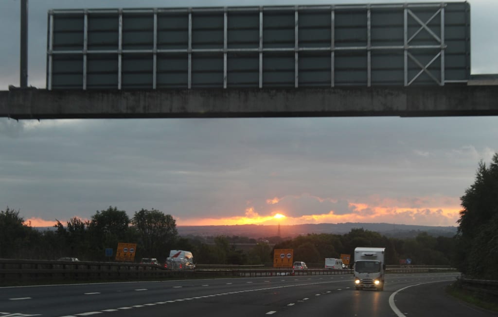 East Midlands Airport ahead; the runway starts directly next to the motorway. The planes come so low over the traffic they seem about to land in the road. Bored enough to wonder how that would look, not quite bored enough to will it to happen. It did happen years back, Sal's dad was a doctor then; he got a police escort to Derby Hospital via Sheffield to pick up blood. I never did quite work out why they didn't just put him in one of the police cars, would have been faster than his Morris Minor; to this day he's chuffed about legally breaking the speed limit.