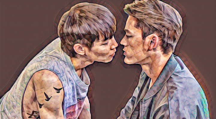 Yok always yearned for the firm grip Dan took on his neck, and this time he didn't have to ask for it as Dan pushed him backward onto the pillow while their tongues explored each other's mouths. Yok nibbled on Dan's bottom lip, causing him to exhale rather loudly and filling Yok's nostrils with his scent. Both bodies grew hotter, Yok almost feverish, and his shirt suddenly felt very restricting.