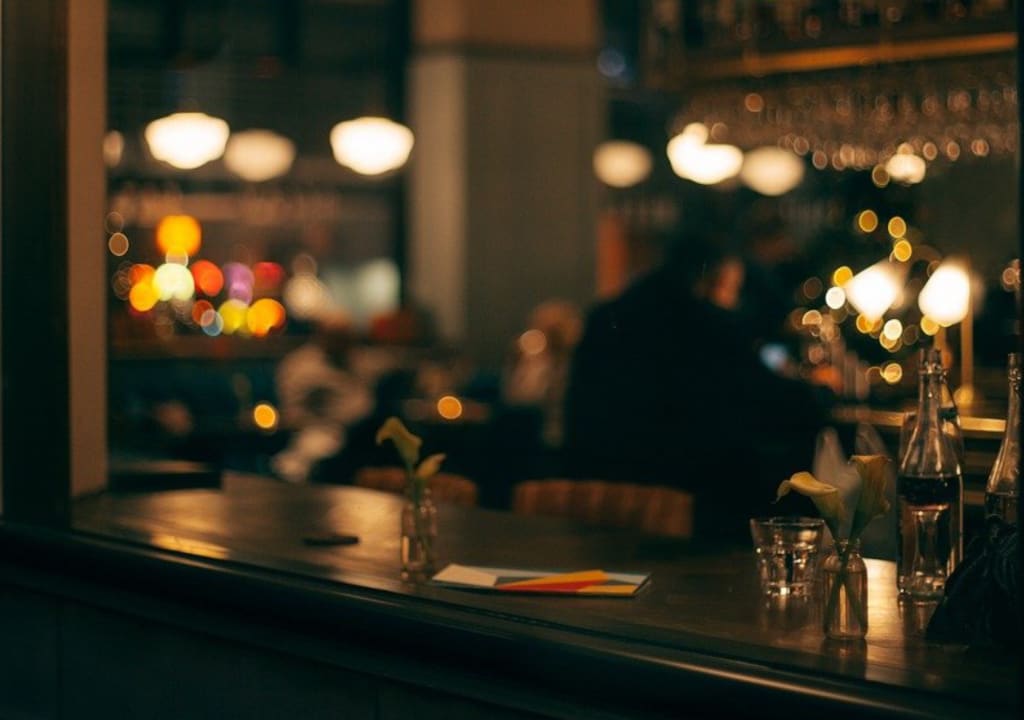 She wore a low-cut black blouse with jeans and heels. She already had a couple of drinks and felt surprisingly happy. She straightened her back and looked up. Her eyes were on fire reflecting the light of dozens of candles placed along the bar.