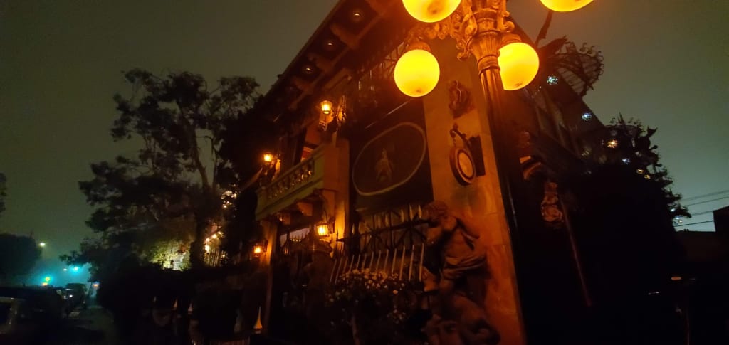 The mist kept visibility short. No more than a few arms lengths ahead could be seen but every light burst like a dandelion. The illumination could be seen long before the illuminated. People on wheeled shoes whizzed by dancing elegantly. Some had makeup and costumes. Others walked around in awe while holding food wrapped in paper. The eclectic group the Reverend had already assembled within moments of his return walked together, a step or two slower than the surrounding pedestrians and in slow motion relative the ones on skates.