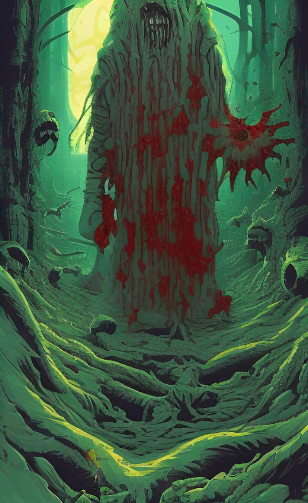 The creature had come through the door soundlessly. I saw it first: a towering mass of flesh, almost humanoid, looming in the hall behind Aaron and his wife. Its white eyes rolled back and forth in its skull as it paused, a slimy tongue slowly licking over its protruding lips. I screamed.