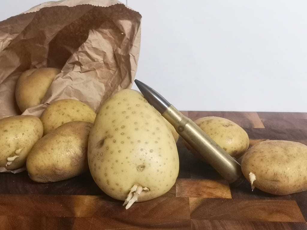 Steve breaches his shotgun carefully so that only the empty cartridge was ejected from the gun. After he thumbed another shell in its place he rummaged round deep in his potato bag to finally produce a grenade.
