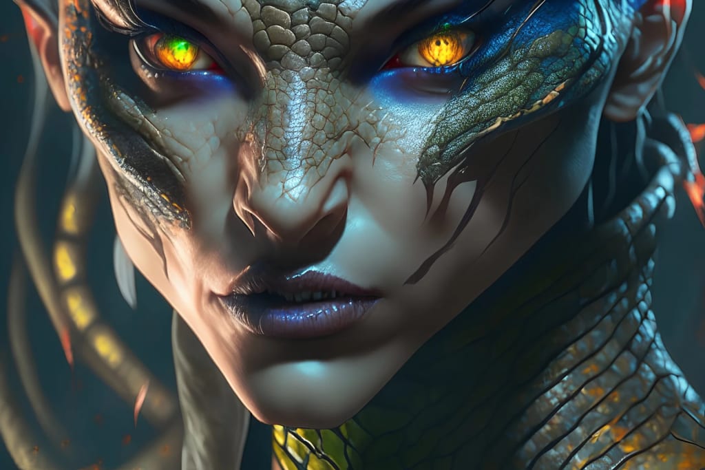 A reflection reveals that Pamela has partial snake skin, which causes the businesswoman to shriek loud enough for a security guard to hear her. The young woman approached Pamela and recognized her, but before she could report her, Pamela suddenly flashed a set of yellow snake eyes before her forked tongue entered the woman's mouth, causing the guard to wither and collapse. Once Pamela returned to her car, she saw that her face was back to normal, and thus began her new chapter.