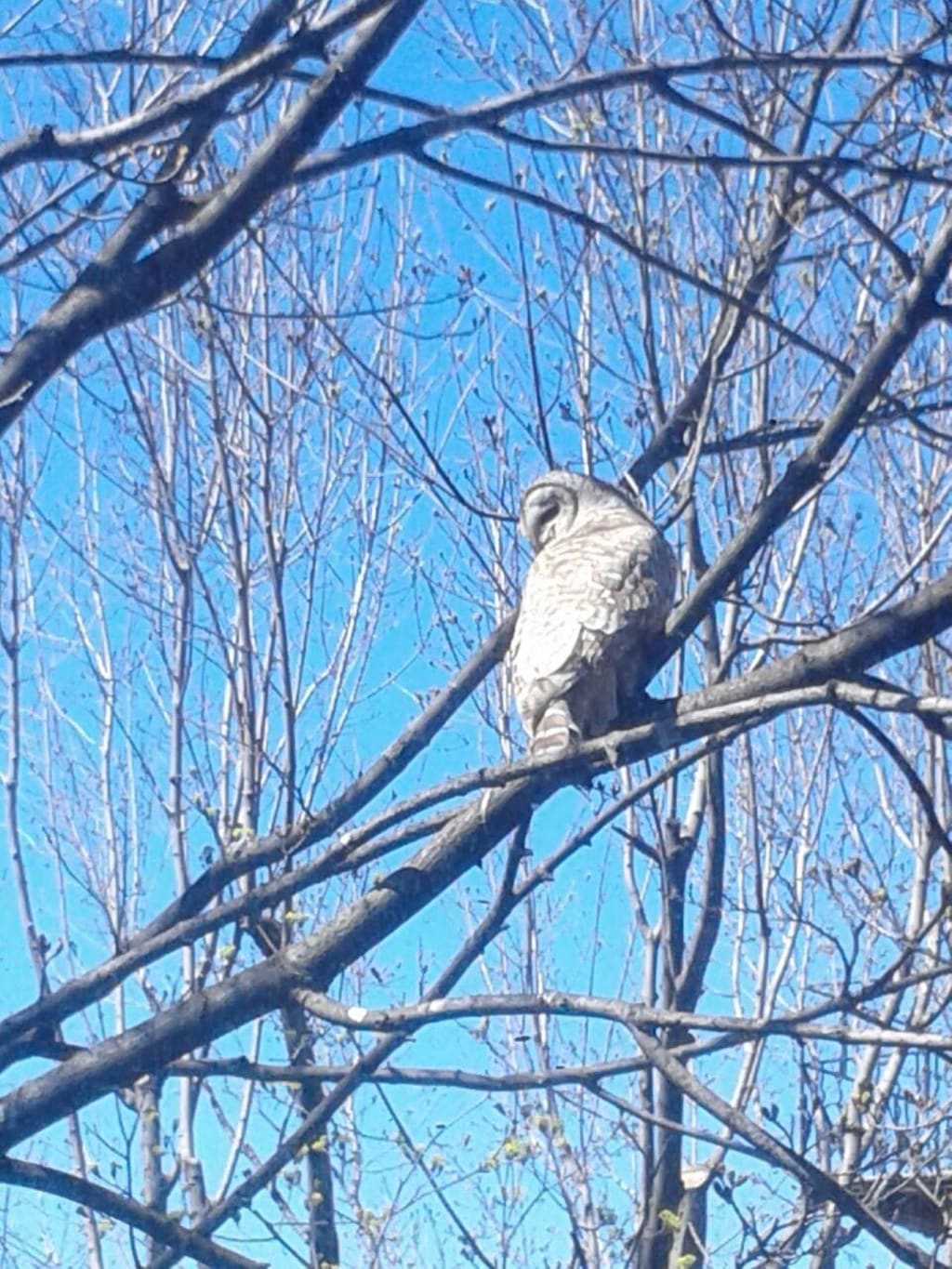 It flies through the room and out the door, which is standing open, held by my foot! “Daniel!” I scream. Daniel screeches a response. Two owls land on a low branch of the old oak tree in our front yard.