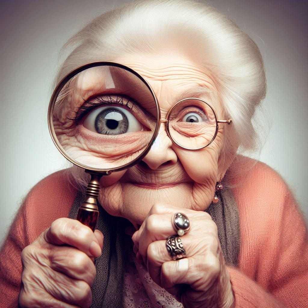 Edith squatted behind him with the magnifying glass out of her crochet basket in one hand, and a pair of tweezers in the other. She squinted, her eye magnified comically.