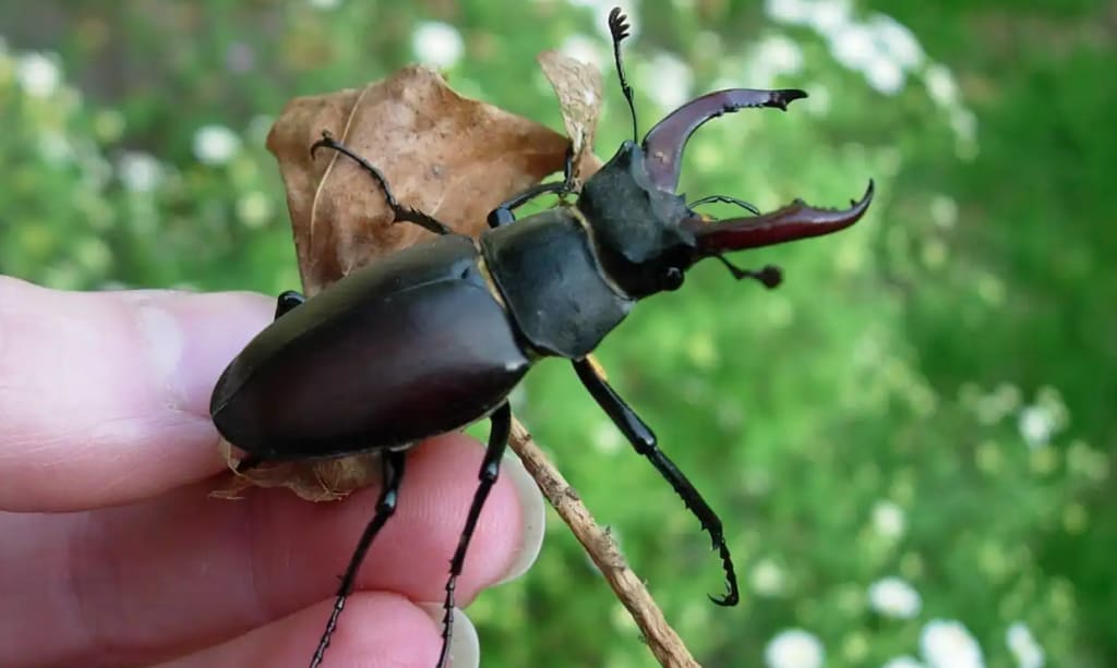 “Sara, don’t!” It was Crystal again, but Sara wasn’t listening. She turned and left the room, returning a few seconds later with a small glass jar. Inside was a stag beetle lying on its back, clearly dead.