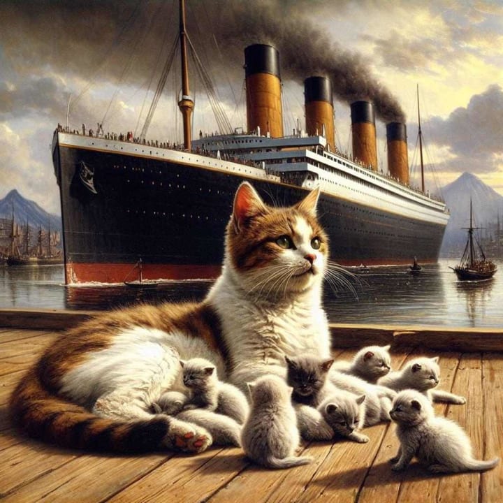 The story behind the story: There really was ship's cat called Jenny! She was the mascot for the Olympic before she was moved to the Titanic, and she kept down rats and helped morale. She did have kittens shortly after being moved to the Titanic while it was in Belfast.