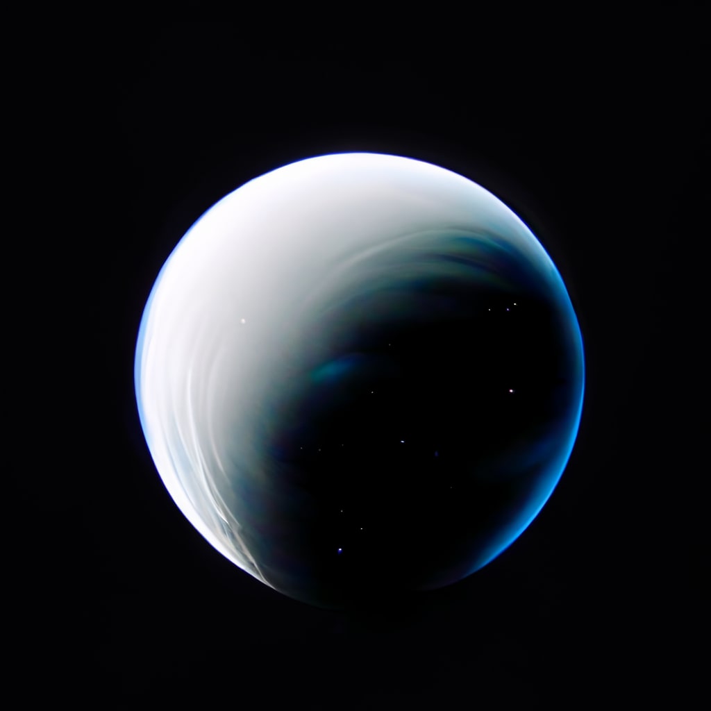 After acquiring his coffee, the approach to the Communications station greeted as the hatch swooshed open with a pleasant tone. The comm room was oval shaped and a sharp light of the surrounding displays shielded Neptune’s beautiful glaze through the observation windows which encircled. A holographic display in the centre of the room pinpointed the 3D position of a signal’s source in relation to the ship and other celestial bodies. Peer workstations also encircled the room, tidy, yet now littered with clutter from his skeleton crew.