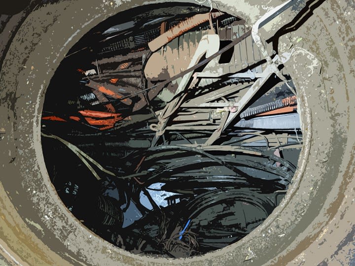 I opened a maintenance door to the underground telecommunications and found data cables as wide as me that twisted around each other. This must have been the artery feeding the Mayoral tunnel. Each braid was coated with a protective polymer, but I could slide a shard of broken glass underneath and access the delicate golden channel within. I opened the braids and lined them up, ready to blast, and heard footsteps along the tunnel.