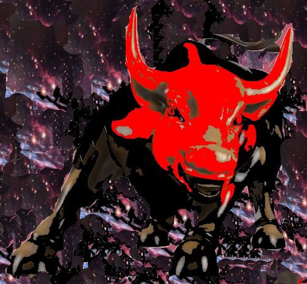 Later, he had his usual light dinner, a few cocktails and then plunged into his bed ready to resume the frantic pace again the next day with hope that the market would somehow rebound as it usually did. As his head hit the pillow this time, however, he was vaguely aware of having drank a bit more than he was accustomed to having since he had wished to forget the enormous losses he had witnessed. The image of the big bull statue returned seeming alive and snorting. There it was, pawing and scuffing its hooves, glaring at him, daring him to challenge its monstrous bulk as it swung its massive head and very sharp horns from side to side. In dreamy slow motion, it seemed to Marvin as he watched helpless, the creature impossibly charged forward and scooped Marvin onto its back and leaped away with Marvin clinging on to the longhorns like handlebars on a wild cycle ride through a panoramic dreamscape which opened before him like a 3D movie. He became aware of some gigantic voice booming like on a loudspeaker from the clouds or perhaps it was in his head as he rode along clutching the horns like a lunatic on a wild bar ride.