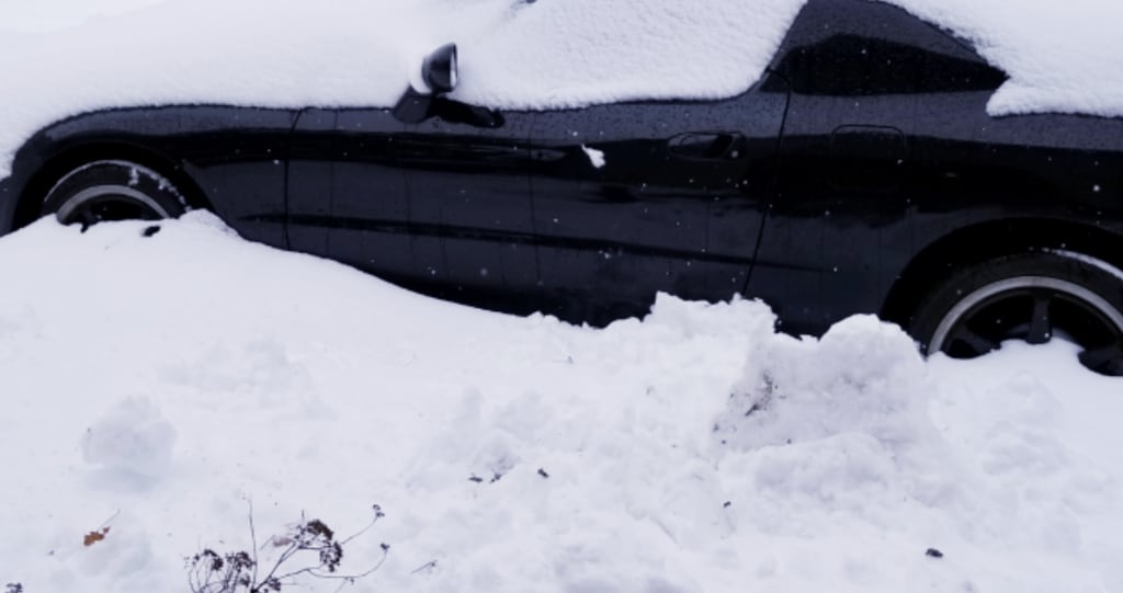 The car stopped when it hit the snowbank. My face stopped when it hit the steering wheel (Maybe I should have looked into that airbag recall.)
