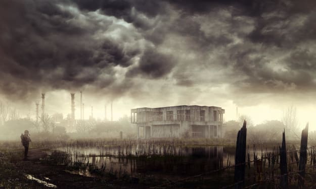 Maya silently waded through the murky water that was now at her hips, the raft she had assembled using an array of decaying objects found on the drylands was now tied to her waist with a thin length of worn rope. It felt heavier as the time wore on, as if she were dragging it through a thick and reeking soup. Bits of plastic and floating rubbish brushed passed her bare legs as she arduously moved through the depths. Maya’s search for food was getting critical, she was hungry. Famished. It had been around three days since Maya last ate, at least it felt like three – the sky never brightened, nor did it darken. She was starting to believe that the whole earth was now shrouded in this murky twilight, covered by clouds that rained ash but never water. She looked up. The black clouds rolled eerily overhead like catastrophic waves. Maya tried to take a deep breath of the muggy air but instead spluttered and coughed as the pollution irritated her air passage. How much more could the toxicity build up before we can no longer breathe? The despairing thought ran across her mind. Maya had traded her gas mask in for food many weeks prior, the remorse gripped her.