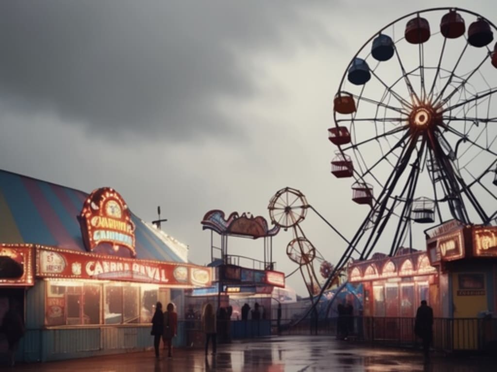 The window stood open to try and clear some of the stale air out. That was when he heard the fairground ride start-up. The music drifted across to him like the mist.