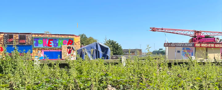 It wasn't long before he came to the gate with the padlock. Pulling the gates apart, he stared in. Just in front of the gates was a tarmac area, and on it sat three caravans that looked like they had seen better days. In the distance, he could see the joke shop; other rides lay behind it in a maze of metal.