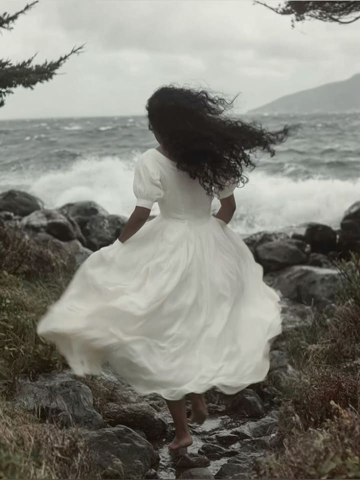 Myria, who was once a young girl, had transformed into a beautiful woman. Her hair had gone from shoulder length to her feet, it glistened like black diamonds in the sun. Her skin remained tan but glistened in the sun like citrine. Her nightgown transformed into a silky dress and her eyes—white. The chief’s eyes widen and he sees Myria building white sandcastles.