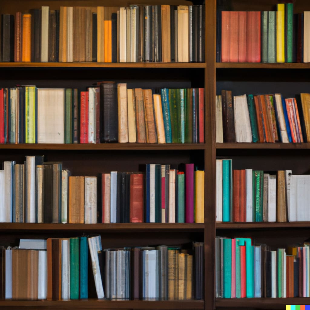I start to read the titles on the bookshelf.