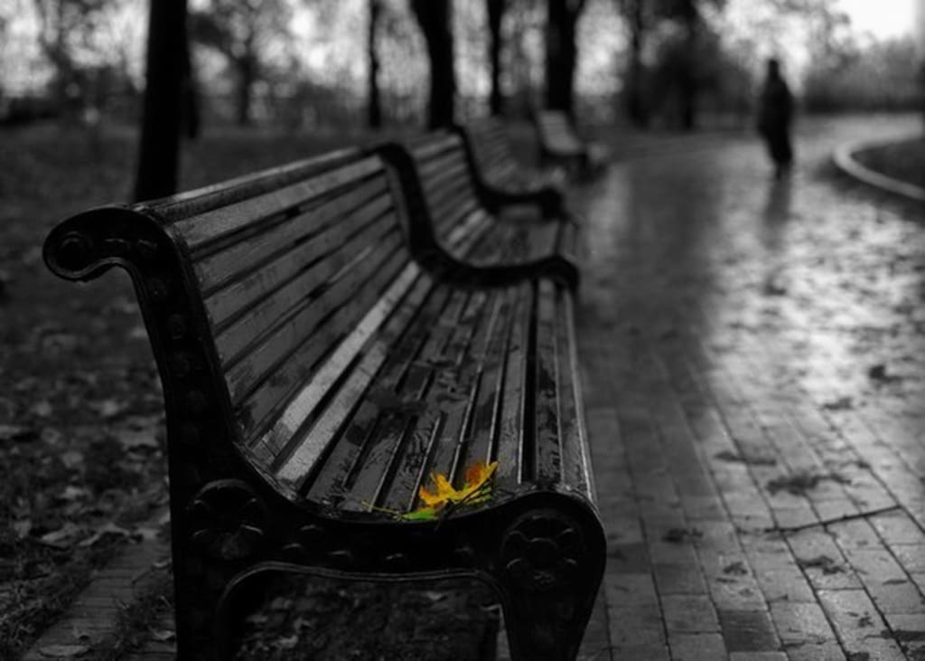 One day, one evening, a color-giving sun set down upon a park which was now in color, Elias sat on a bench glaring at his hands. "Why is it like this?" he asked the boy quietly. Why should I forfeit myself whenever the world advances in anything?