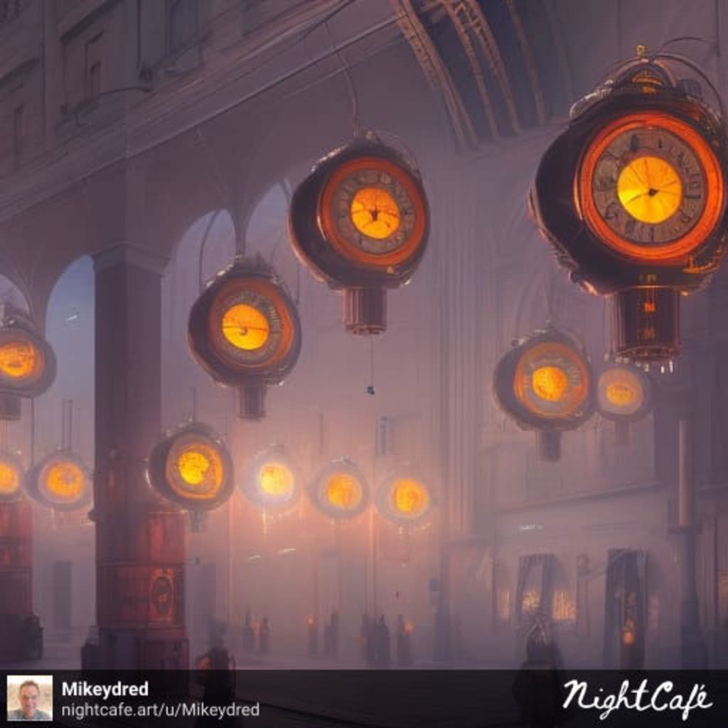 After work, he took himself into town to buy three wind-up clocks to protect him from “time vampires” in the houses next to and behind his house. He felt almost grateful that he wasn’t in a high rise apartment as the floor and ceiling would make him vulnerable to the time drain.