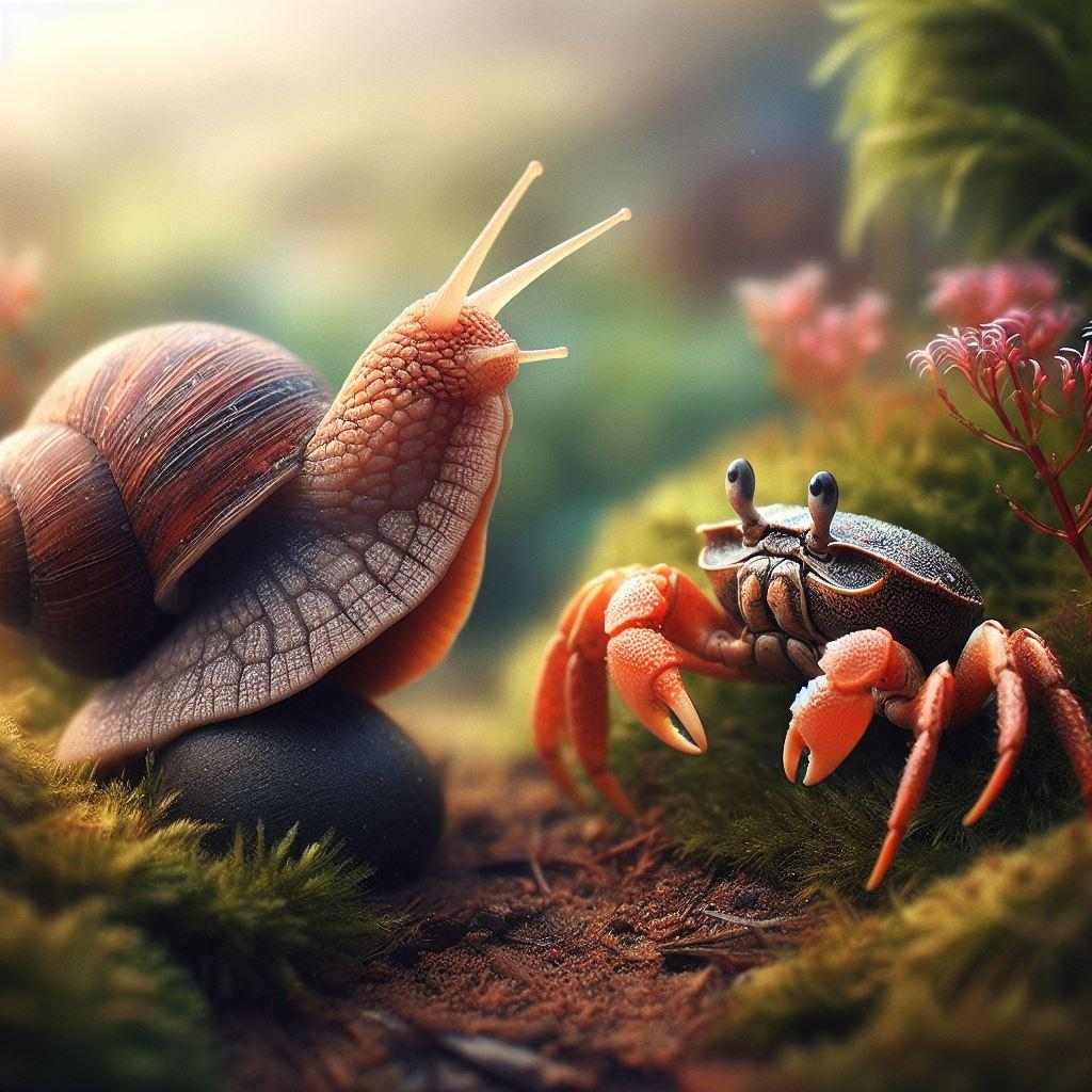 "Don't you get bored of it?" he asked. Being a hermit crab, he'd inhabited several shells and thought it odd to be stuck with the same one forever. He didn't want to offend Snail by saying this outright. Instead, he told her proudly,