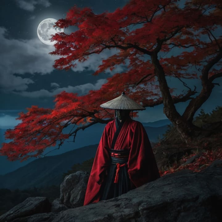 A haunting tale of vengeance and honor, set beneath the blood-red glow of a maple moon. The story follows Kaito, a lone samurai known as the Crimson Warrior, as he faces his greatest enemy in a battle that will determine the fate of an age-old vendetta. Against the backdrop of a wind-swept forest, illuminated by the scarlet hues of autumn leaves, Kaito confronts his past, his enemies, and his destiny. This is a story of resilience, sacrifice, and the timeless pursuit of justice.