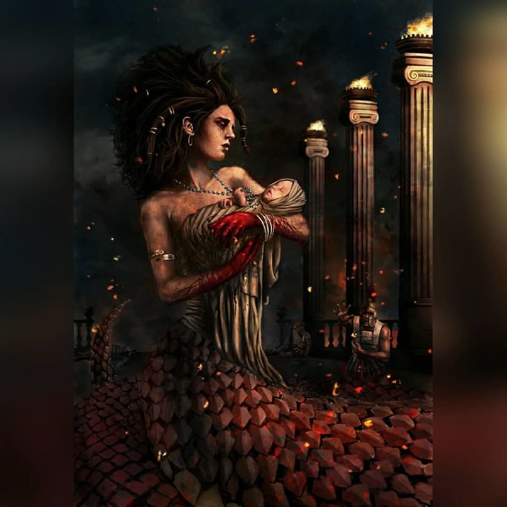 From that day on, Lamia's eyes would never close, and she would be tormented by the memory of her dead children, whom she had killed in a fit of madness. She became a monster, driven by anger and despair, and she sought revenge against any mother who dared to have a child.