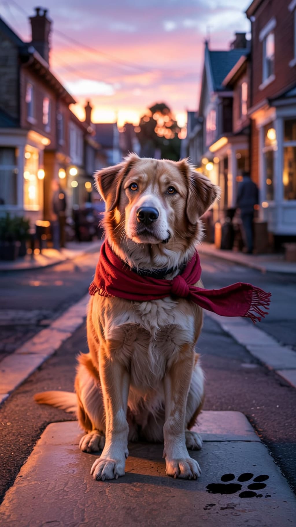 One morning, he was just there—sitting beneath the crooked old oak at the edge of Main Street, as if he’d always belonged. His fur was golden but worn, like sunlight dulled by dust. He walked with a limp, barely noticeable unless you looked closely. But the thing people remembered most were his eyes. They weren’t just brown—they were deep. Soft, knowing. Like he understood something the rest of us had forgotten.