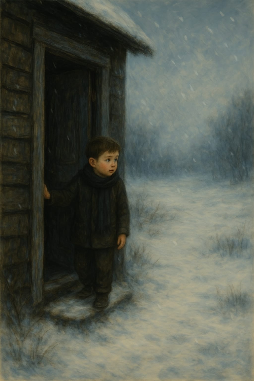 The little boy sat curled up in a corner of the wooden house. Whenever his eyes gazed at the golden, radiant rays of the sun filtering through the white snow outside, a tremor stirred within his tiny heart. He would shrink further into the corner, closing his eyes, trying to hide himself.