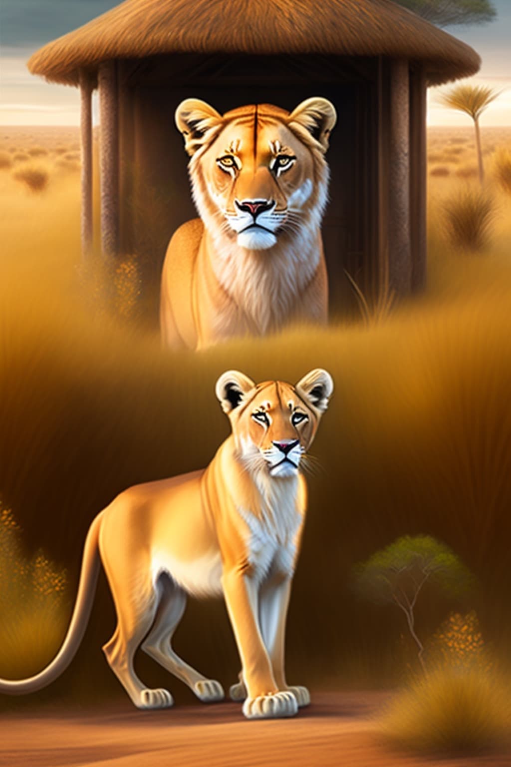In the heart of that sun-kissed haven stood a majestic golden lioness, her coat resplendent, shimmering like a cascade of molten gold. As Kofi's eyes widened in awe, a sense of awe and wonder swept through his being. But rather than trembling with fear, he basked in the warm and comforting presence that emanated from the regal creature. Gracefully, the lioness approached, her eyes gleaming with a profound wisdom that belied her majestic visage.