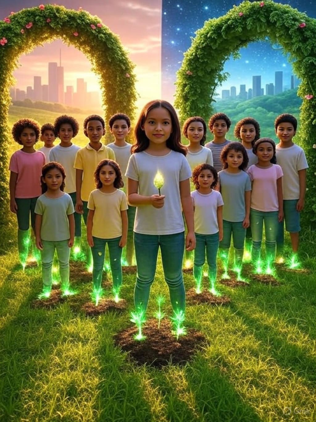 But the seeds were more than just plants. At night, the trees whispered to the children in dreams, sharing visions of a world where cities bloomed with greenery and the air sparkled with possibility. The trees seemed to know things—secrets about the Earth’s forgotten magic, about how humanity had once lived in harmony with nature. “You are the gardeners of tomorrow,” the whispers said. “Plant the seeds, and the world will follow.”