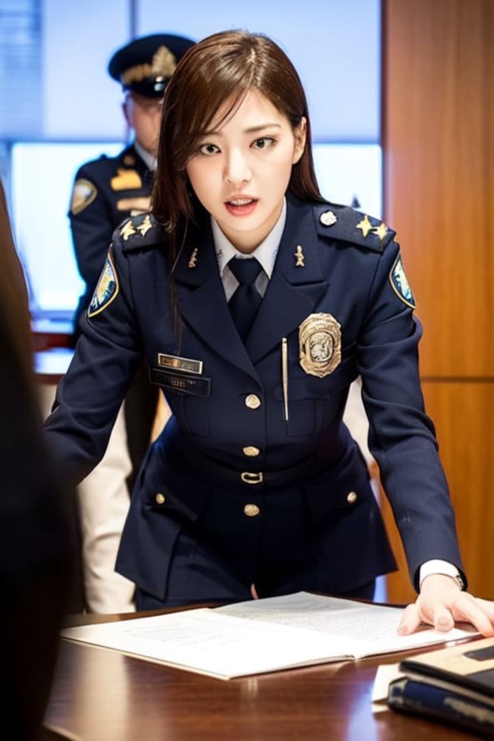In a secluded office within the police department, the investigating officer, was called in for an unexpected meeting. As she entered the room, she found herself face to face with the police general.
