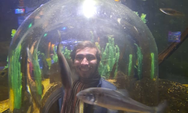 A glimmer of light blue touches her golden hair, the turquoise sky floating above her head. Crimson streaks sail over the underwater glass dome, a glade of pine trees sleeping beneath the silent glow. The echo of the meteors slamming on the ground above fills the dome, her skin illuminating with orange. Harmony whispers what her father always told her,
