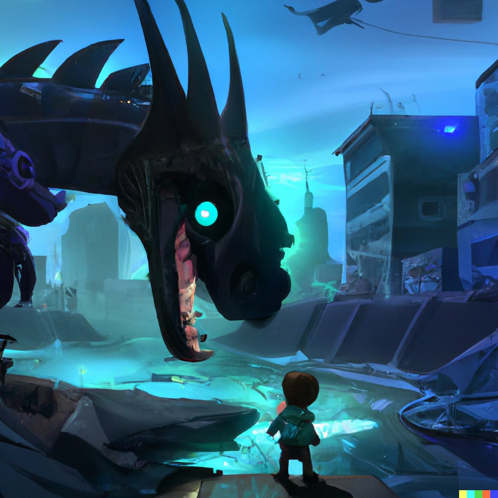 DRAGON understands more than the sum of humanity’s knowledge. He does not understand this. He flies back to the tower, scoops the toddler up with one claw, and takes to the sky.
