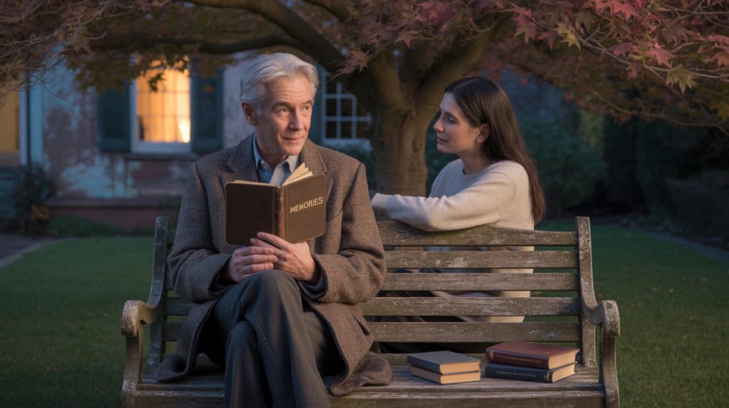 Sitting on a wooden bench beneath a maple tree, a journal in his lap, Elias Ward looked up and met her eyes.