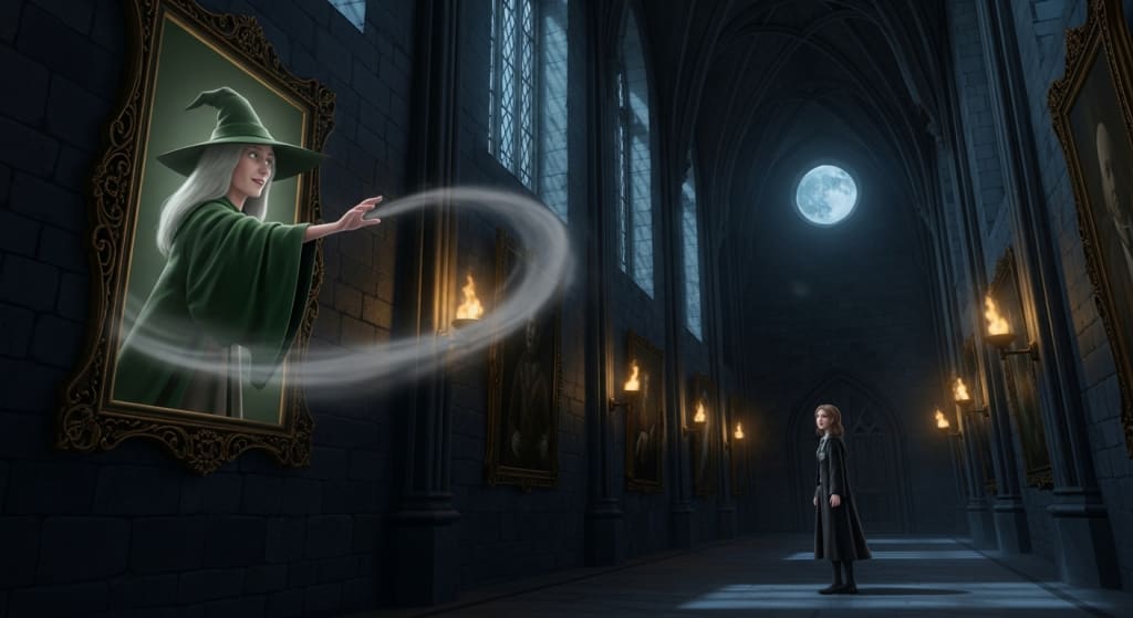 Her frame vanished. Her body grew, adorned in velvet and jewels the size of apples. One by one, other portraits followed. Witches and wizards poured into the hall like smoke from shattered glass. Laughter, clinking wands, the rustle of robes—centuries of sorcery spilled back into the real world.