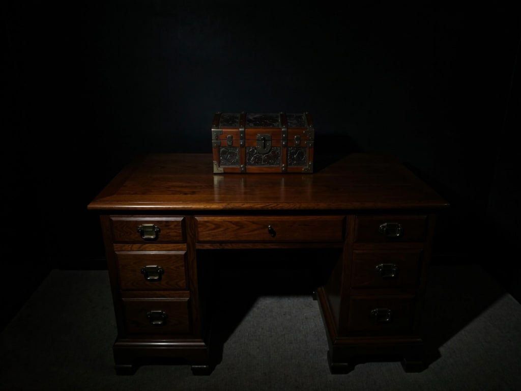 The door didn’t open easily. It unlocked with little effort, but opening it took some muscle. When it finally gave way, I found a dust-free room with an old desk in the middle. The air smelled stale, but an exhaust fan automatically turned on, clearing it.