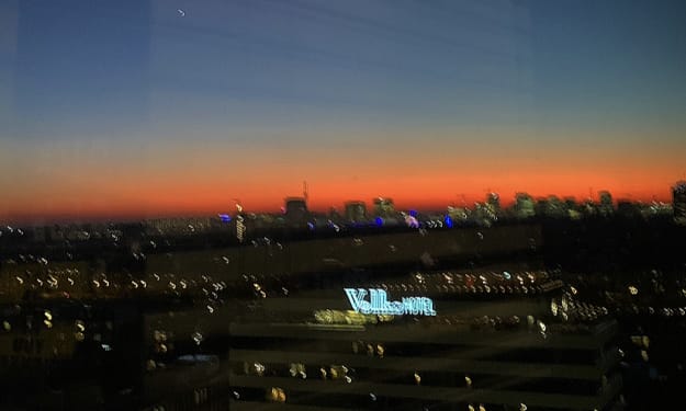 “We haven’t made a single stop, this train has been moving constantly for hours, without stopping. I’m not sure if I even know where I’m going.” He looks up now, a confused look scribbled across his face. He looks quite sweet. I look out at the glittering lights of the city night and then look back at him, scrambling to remember why I’m here or where I’m going.