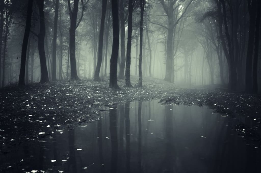 The forest is closer than she realizes. In the darkness, the leaves are expressionless, dark layers of black atop thick trunks. Some trees have shed their leaves and open their barren limbs to the world as though for loving embrace. The fog dances openly in the moonlight, beckoning for playmates into the swamp just beyond.