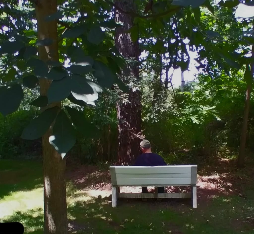 The bus came to a stop at the park's entrance, and he haltingly stepped down from the bus. Every day he would hobble to the same park bench and feed the pigeons. A little over a month ago, a dog came from out of nowhere and tried to attack the birds. His would-be-food source scattered and flew off. He was so hungry he began ravenously eating the pieces of bread that he had scattered on the ground. He gave the dog the sandwich he had in his pocket and the dog took it and ran off.