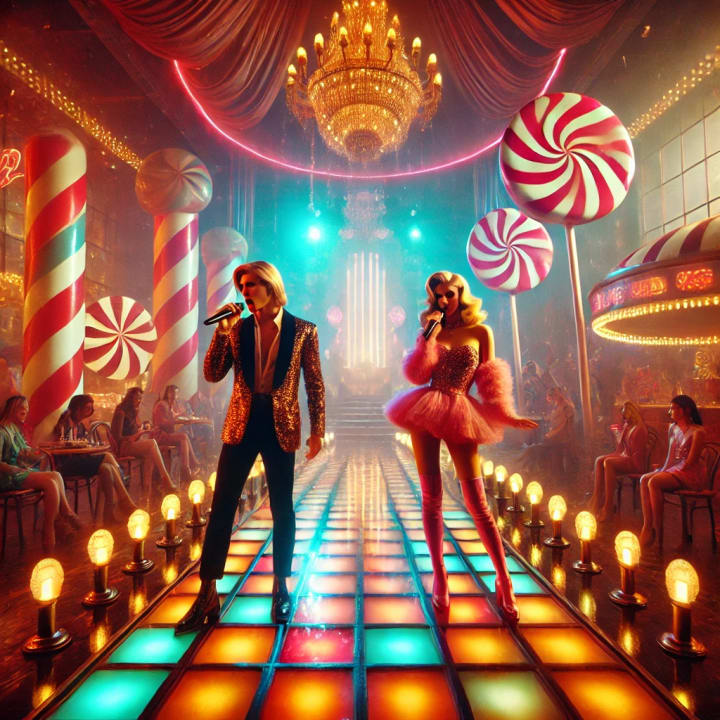 A montage played—Candy Land’s neon sugar glass chandeliers, floors tiled in caramelized hard candy that glowed under the lights, walls lined with marshmallow tufted booths.