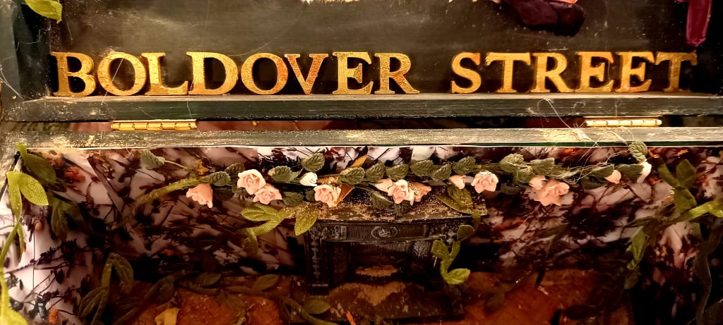 Harold left his house by the front door, walked up his pristine path and then down Betty’s, blooming and overgrown with colour. Before he could press the bell, Betty opened the door. With her huge welcoming smile, she curtseyed and beckoned him in.