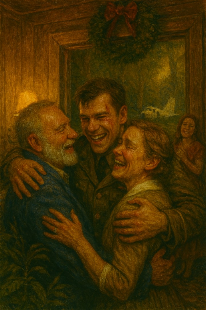 Her breath caught before it could become a terrified gasp. The knock now appeared gentle, almost reverent, when compared to the men in uniform...becoming a thunder in her head. Her eyes scanned their faces, searching for mercy, for contradiction, for anything that might undo the truth she thought they already knew. But their heads were bowed, their posture formal, and the snow clung to their shoulders like mourning veils.