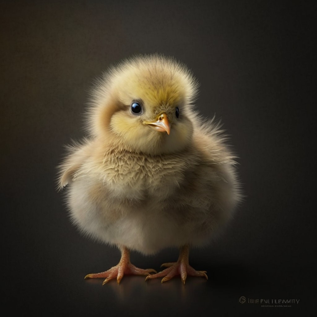 Once upon a time, in a beautiful farm, there was a cute little baby chicken named Tommy. Tommy was very special, he was born with a beautiful golden color, and he had big, bright eyes that sparkled in the sunlight. All the other chickens in the farm loved Tommy, and they would always play with him and keep him company.