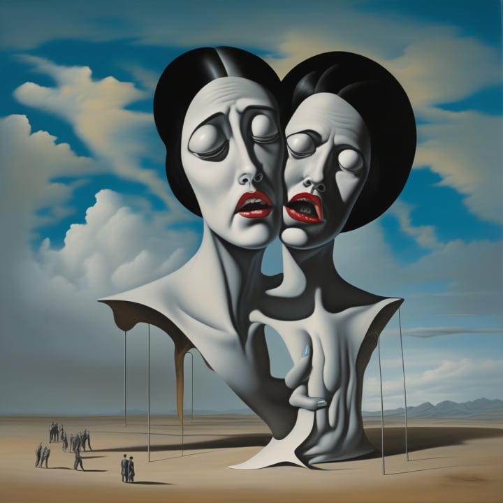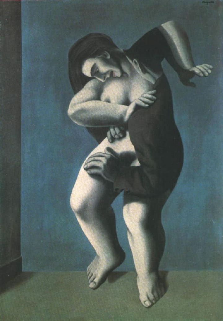 Inspired by L'Aube Désarmée, by Rene Magritte, below. The other images were created, at my behest, via ArtSpace.ai, viz., as per Dali, Picasso, and Magritte. I'm no artist, so I cheat with AI. But I am a writer, so I never cheat with that.