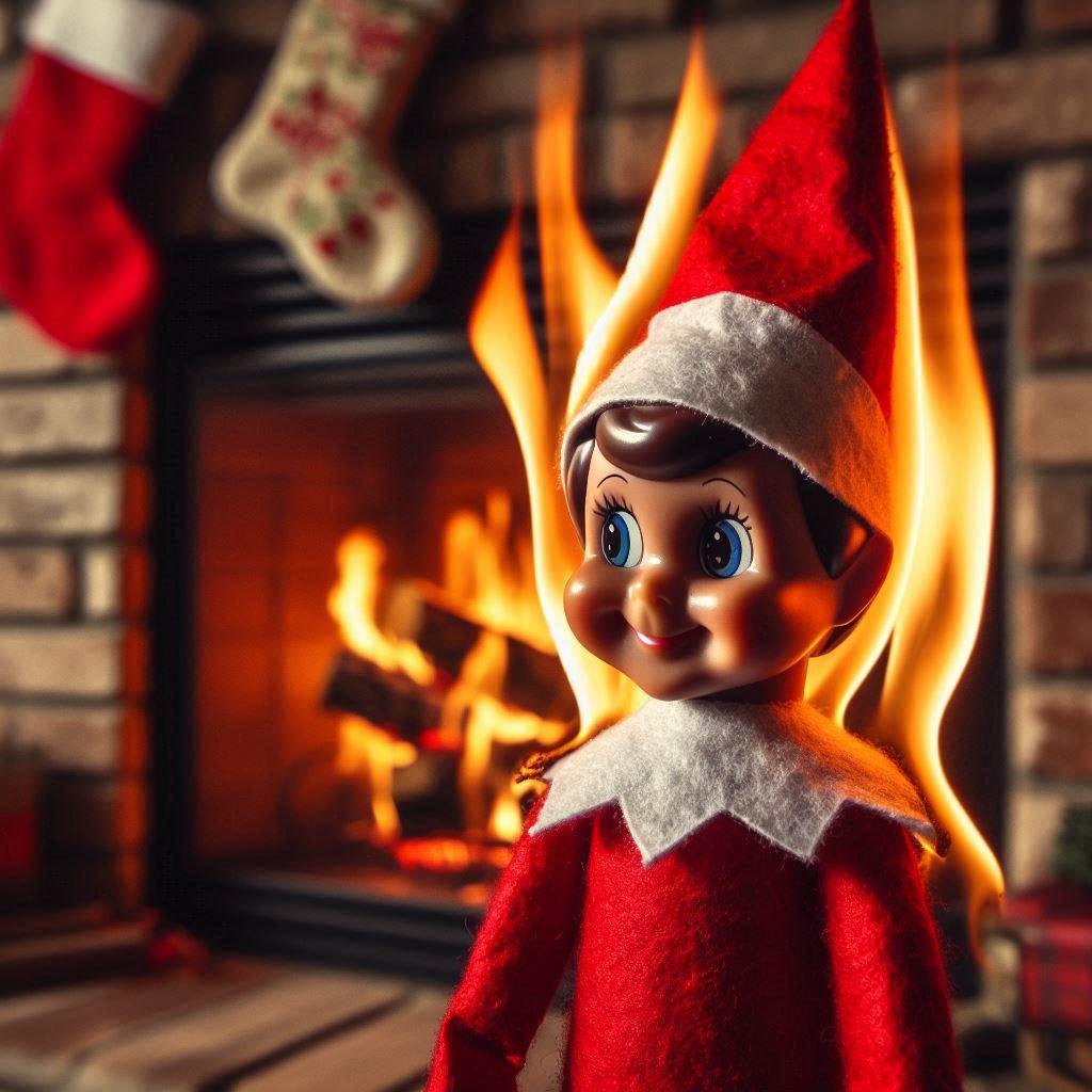 The decorations on the mantel caught. She didn't notice at first, what with her nostrils full of burning plastic, and her brain full of stop the elf.