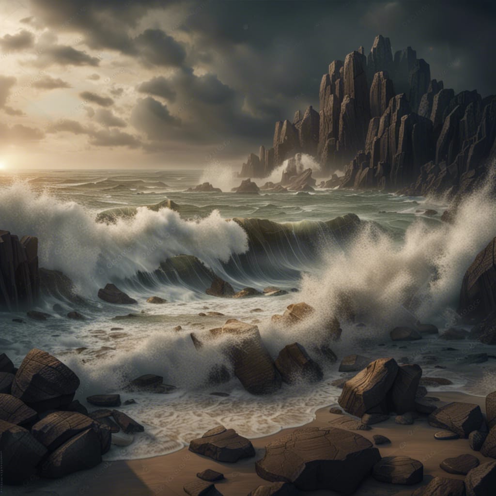 The Ocean waves crashed on the sandy Beach, hitting the rocks and wearing them down, depositing fragments on the sand. The storm had been raging for three days and turned The Ocean into a raging destructive monster. Boats were sunk, lives were lost, but The Beach, as always just had to take it.