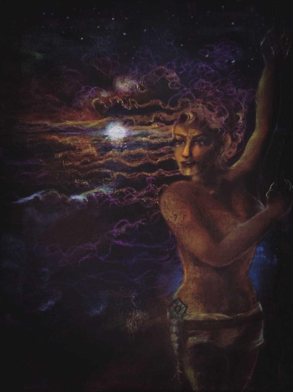 In the light of the moon, he realized that he did not know her. He knew all the villagers, all the females, but he had never seen anyone this beautiful before. Large eyes, almost level with his own, so she was not a short small female, with long eyelashes, so long that they fanned her eyes so he was unsure if she was peering up at him, or not – high cheek bones, which also seemed to be fanned by her eyelashes, flaring nostrils, full lips, and a prominent chin – she had sinewy muscles of one who obviously sailed, swam, ran, or perhaps even danced often. Neither did she appear to be quite as dark as him and his people, but that could possibly be because of the moonlight. Unless…he had heard of…could it be…Mahuika of the mountain, who hardly came out during the daytime?