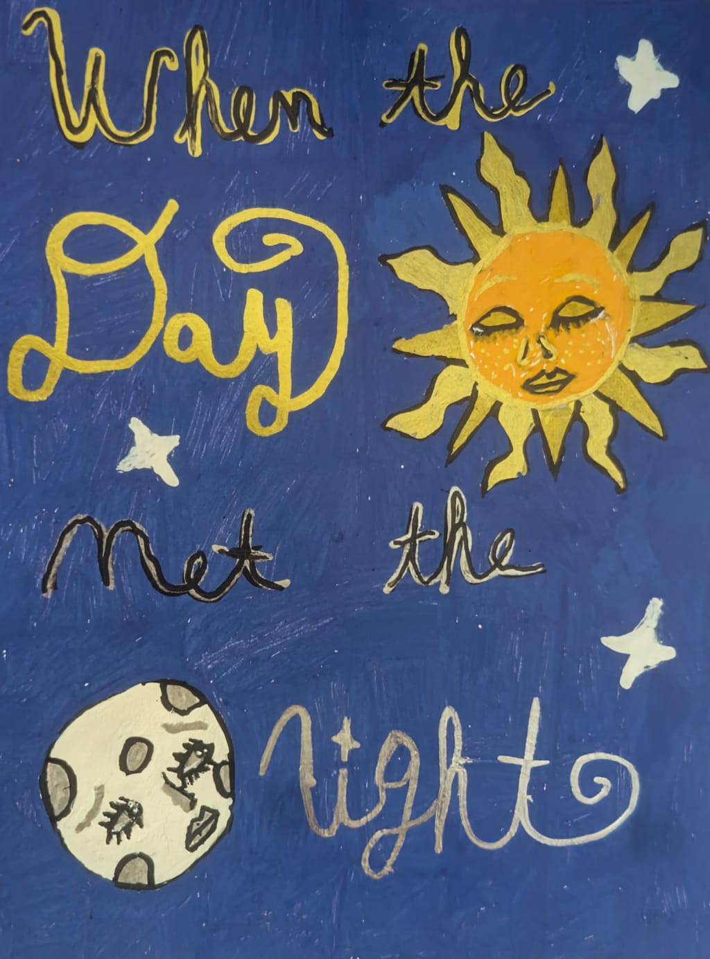 In the beginning, before Earth’s creatures invaded space, there were only the celestial bodies, orbiting around each other. The moons lovingly orbited their planets, the planets orbited the sun, and the sun orbited nothing because the sun was the ruler of the Milky Way. The Earth’s young moon caught glimpses of the sun as she endlessly circled her planet. She smiled at the sun, and they always smiled back. As the months wore on, they grew closer and closer, until one day, the moon stood directly in front of the sun. They were breathtaking up close. Their golden hair flowed freely down to their waist. Sunspots dotted their sharp, angular face and they radiated a heat strong enough to scorch the Earth, but gentle enough to warm a weary traveler. And the moon felt drab and inadequate in their presence.
